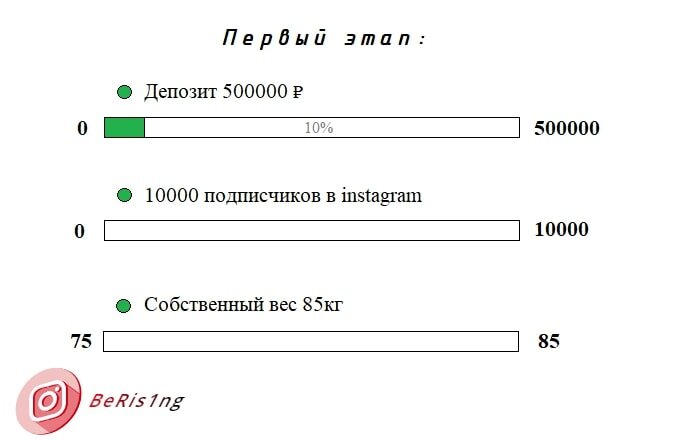 Первый этап будет самый сложный, т.к. всё нужно начать с нуля. Большинство людей сдаются именно на нём, не дождавшись даже первых результатов. Начальный капитал 50000 накоплен, развивать я его буду в интернете, об этом следующая публикация. Настроен решительно. Основной упор буду делать на первый пункт. Ни для кого не секрет, что деньги хоть и не самое важное в жизни, но без них куда сложней, чем с ними) Они расширят область деятельности, которое в дальнейшем пригодиться. Сейчас работаю над конкретным планом по достижению первого пункта, постараюсь его разбить на мелкие шаги с датами их выполнения.