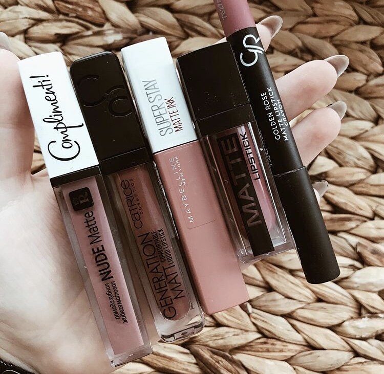 Эти помады я очень люблю и обожаю всей душой♥️ ♦️Мэйбилин СуперСтэй -самая стойкая из всех. Отмыть сложно, но если нужна феноменальная стойкость-это к ней. Может сушить. Стойкость-ешь, пей-не сотрётся. ~450 рублей, есть во всех магазинах, где представлен этот бренд. ♦️Стеллари Матт Крем-средняя по стойкости, текстура очень комфортная. Оптимальна на каждый день. Стойкость-кофе. ~350 рублей, эксклюзив магнит косметик ♦️Релуи Комплимент-жидкая. Очень комфортная, легка в нанесении. Пару взмахов кисточкой и готово. Стойкость-кофе и салат. ~250 рублей, беру в магазинах белорусской косметики, можно найти в разных интернет магазинах ♦️Релуи АльтаМода-в стике. Плотная, насыщенная, суховата, но в итоге комфортная. Легко наносится без карандаша. Стойкость-кофе, салат, булочка. ~220 рублей, беру в магазинах белорусской косметики, можно найти в разных интернет магазинах. ♦️Голден Роуз-помада в карандаше, очень удобный формат. Комфортная, губки не сушит. Стойкость-кофе и торт. ~240 рублей, пар