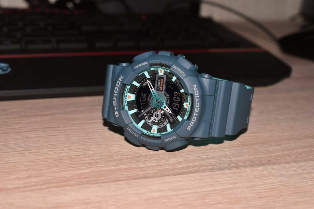 Такой популярный корпус как GA-110 нужно рассматривать как на примере конкретной модели [GA-110CC-2A], так и в целом. Секрет успеха 110-х нетрудно объяснить — невысокая стоимость, актуальный молодежный дизайн, прочная и надежная конструкция корпуса. Мятно-синяя расцветка только подогревает интерес к серии и заставляет забыть об отсутствии дорогих возможностей. Многие используют эти часы в качестве простой рабочей лошадки, и пожалуй, в этом их главное предназначение.