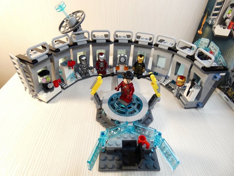 Здравствуйте, уважаемые любители LEGO. Представляю вашему вниманию очередной обзор конструктора LEGO. В этот раз, рассмотрим набор с артикулом 76125 и с названием «Лаборатория Железного человека». Год выпуска – 2019. Количество деталей - 524. Оригинальное название - Iron Man Hall of Armor. Название серии - Marvel Avengers. Судя по названию данной линейки наборов (Marvel Avengers), было бы логично предположить, что этот конструктор создан по, всем известному, фильму «Мстители: Финал». Но, как ни странно, набор больше подходит к трилогии «Железный человек». Так как именно в этих фильмах мы могли видеть лабораторию Тони Старка, со всеми его костюмами. В общем, как это принято у компании Лего, получилась довольно оригинальная смесь, основанная сразу на нескольких кинопроизведениях. Хочется сразу сказать, что набор оказался неоднозначный. С одной стороны, мы имеем неплохую реализацию давней идеи – фанаты Железного человека давно просили у Лего сделать сет на тему лаборатории, или мастерск