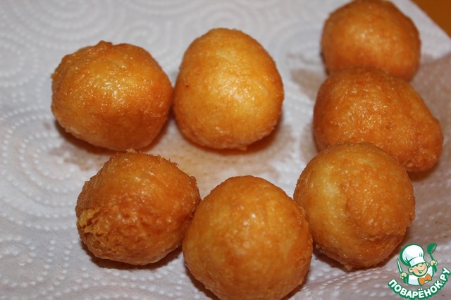 Изначально сырные шарики появились в штатах.Все мы знаем их любовь к фастфуду. Сначало они были предназначены как закуска под пиво в барах и пабах.Но с течением времени, стало больше сочетаний и вариаций компонентов и из низкого статуса сырные шарики переросли в более высокий.К ним можно подавать различные соусы, но традиционным соусом считается чесночный. Сегодня я расскажу как сделать из хрустящими и золотистыми. Мой рецепт рассчитан на 12 порций. Занятость:30-40 минут Пищевая ценность на готовое блюдо: ккал -754.4 ккал белки -59.99 жиры -50.64 г углеводы -14.98 г Ингредиенты: 🥚Белок яичный-2 шт. 🧀Сыр голландский-200 гр. 🥐Мука пшеничная-20-30 гр. 🤍Майонез-6-7 ст.ложек 🧄Чеснок-3-4 зубчика 🧂Соль по вкусу 🌻Мало подсолнечное -для жарки Приготовление: 🧊Берём 2 белка, и взбиваем до плотной Белой пены. 🧊Трём сыр на мелкой терке и закидываем в белки.Туда же засыпаем муку. 🧊Перемешиваем все ингредиенты,формируем шарики. 🧊В кастрюлю наливаем подсолнечного масла так,чтобы шар