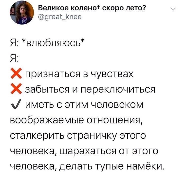 Ты строишь идеальные отношения со своим крашем у себя в голове? Да, девочки, это наша проблемная тема. давай представим, что он тоже тайно в тебя влюблён, но боится признаться в этом🤡 сегодня мы рассмотрим признаки влюблённого краша💞или просто помогу тебе как распознать влюблённый взгляд парня. •частые переглядывания. если вы несколько раз встретились взглядами, то стоит задуматься. •если шутки шутит в компании и сразу падает взгляд на тебя, чтоб узнать твою реакцию-готовь шмотки и валите в ЗАГС. •повторяет твои словечки/любимые жесты, простым словом подражает в речи. •пытается коснуться тебя или просто будет рядом. •пишет тебе, используя ироничные эмоджи🤡 Если хоть один фактор совпал, удачи вам💕 familyG