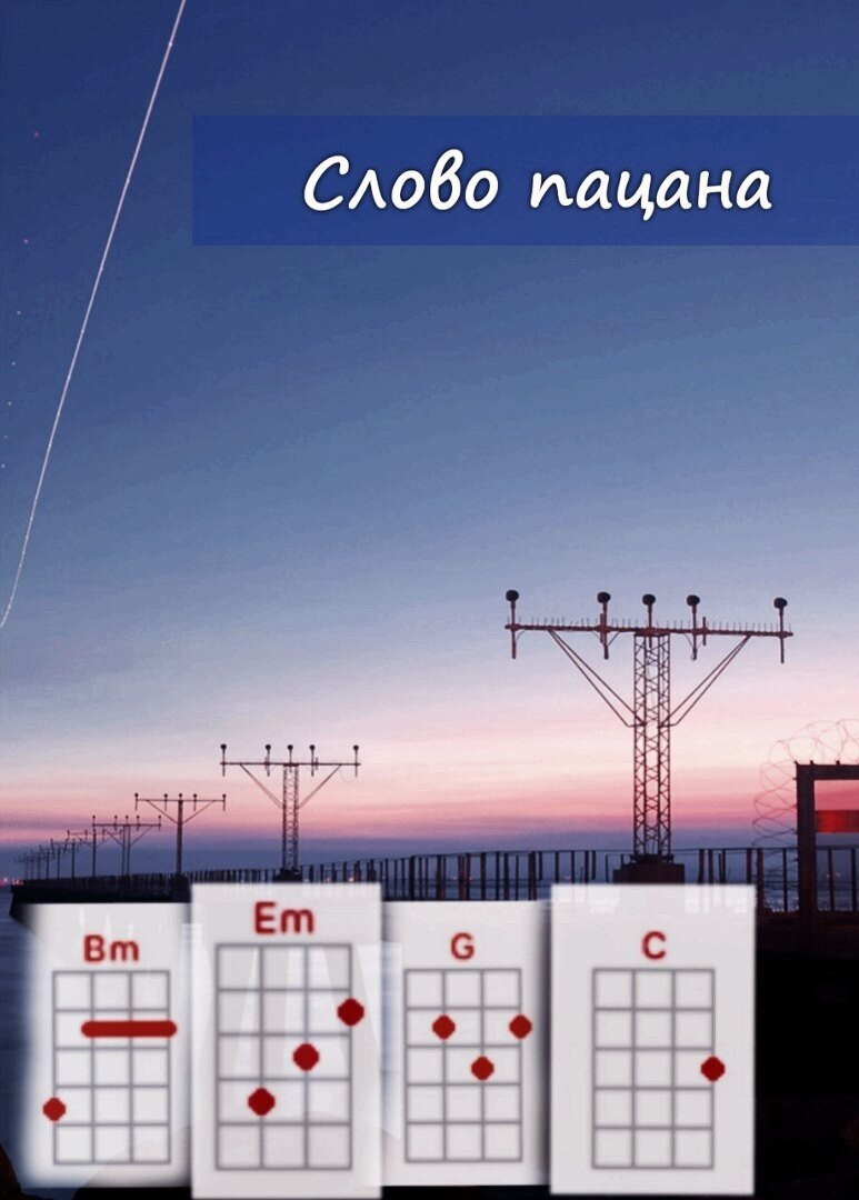 Макс Корж - Слово пацана вся песня: G Bm Em C G Bm Em C На одной из старых дач, за столом большим и шумным. G Bm Em C Речь держали пацаны о вечной дружбе. G Bm Em C Дым по кругу и до дна стаканы все клялись друг другу: G Bm Em C Своих не забывать, Вместе идти, вместе и до конца. Припев: G Bm Слово Em C Пацана G Bm Не понять тому, кто не бежал от местных Em C С перебитым носом, пьяные по дворам. G Bm Нужно Em C Расстаться нам G Bm Но на время, значит ненадолго, Em C Может на неделю, но точно не навсегда. G Bm Em C 4р Ооооооооооооооо G Bm Em C Ну а завтра кто куда, кто служить, кто в институты,