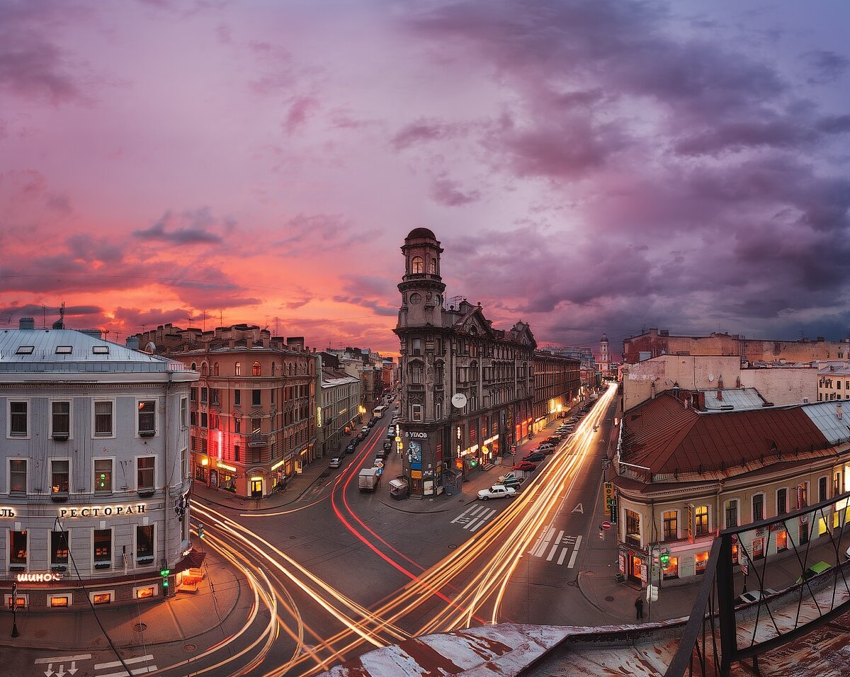 Одно из самых интересных петербургских мест в городе это, конечно, самый известный перекресток Северной столицы - Пять углов. Перекресток прославился не только из-за необычной архитектуры, но и благодаря многим проживавшим здесь знаменитостям. Считается, что это место обладает мощной энергетикой и привлекает к себе внимание многих людей. Пять углов – это неофициальное название перекрёстка, образованного пересечением Загородного проспекта с улицами Разъезжей, Рубинштейна (бывшая Троицкая) и Ломоносова (бывший Чернышёв переулок). Перекрёсток существует с 1760-х годов. На небольшой площади сходятся три улицы, на которых стоят пять знаменитых домов. Как может такое количество построек одновременно разместиться на такой небольшом месте? Объяснение простое - два здания имеют форму треугольника, острым углом.
