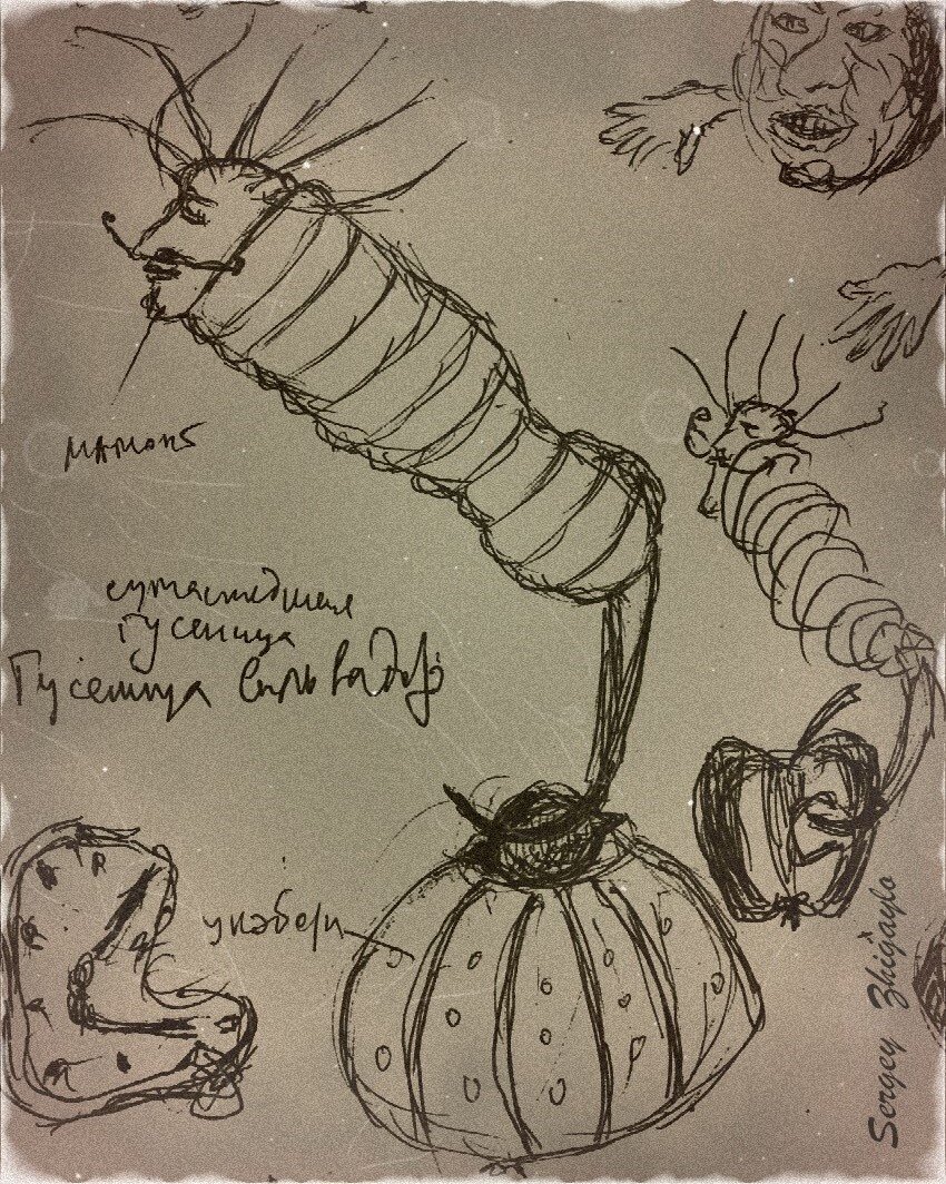 Приветствую всех читателей моего канала! Сегодня про Сальвадора Дали. На днях в Москве откроется выставка его работ. Дали - личность яркая. Он очень интересен мне, как художник, поэтому планирую посетить эту экспозицию. Так получилось, что в своей работе я уже касался творчества Сальвадора Дали несколько лет назад. Тогда на свет появилась работа под названием "Гусеница Сальвадор". А началось всё вот с такой идеи, посетившей мою голову и быстро зафиксированной на листе бумаги: Эта скульптура была выполнена в комбинированной технике из нескольких пород дерева. Мои размышления о внутренней сущности модного художника воплотились в такую довольно эксцентричную форму потому, что для меня, по своей сути, он является сверх успешным "рыбаком". Работа выполнена в виде рыболовной мушки-приманки (подобные используются для нахлыстовой ловли). Яркая рыболовная мушка и рыбная ловля - это аллегория творческой жизни Дали. Его яркие картины - это приманка для нас, зрителей и покупателей. Приманка,
