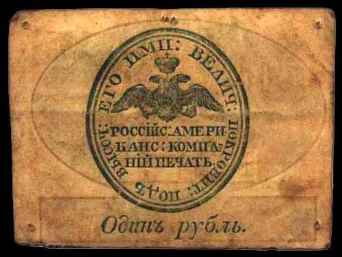 Если бы вам показали небольшой замызганный кусочек кожи неопределенного циста с затертыми подписями и сказали, что перед нами деньги, вы, видимо, приняли бы это за шутку. Однако в прошлом такие деньги действительно имели хождение на Аляске. Надо сказать, что вообще-то кожаные деньги не являлись изобретением XIX века. Они имели хождение еще в древнем Карфагене 2200 лет назад. Первый выпуск кожаных денежных знаков на Аляске начал печататься в 1816 году на тюленьей коже. Он включал знаки достоинством в 1, 2, 5, 10 и 20 рублей. Следует отметить, что этот выпуск, как, впрочем, и два последующих, не был санкционирован русским правительством. До 1826 года было выпущено 10 000 единиц на сумму 42 000 рублей. С годами знаки, или, как их называли, марки, обветшали, стал плохо различаться цвет, стерлись надписи. В связи с этим Главное правление компании обратилось к правительству за разрешением на замену износившихся марок. Комитет министров решил не препятствовать этому, но формальн