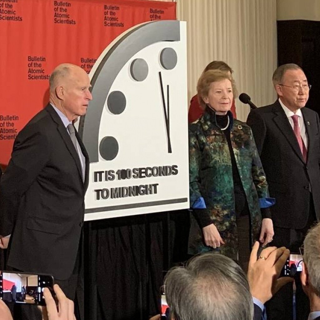 Стрелку Часов Судного дня передвинули на 20 секунд вперёд - теперь до условного "конца света" остается всего 100 секунд Авторы проекта чикагского журнала "Бюллетень ученых-атомщиков" уверены, что мир на грани глобальной катастрофы. По их мнению, из-за возросшего риска начала ядерной войны, климатических перемен и кибервойн, стрелка часов должна сдвинуться на 20 секунд, то есть зафиксировав время 23:58:20. Таким образом, до так называемой глобальной катастрофы осталось всего 100 секунд. Отметим, Часы Судного дня были запущены в 1947 году на отметке 23:53. Каждый год положение стрелок пересматривается.