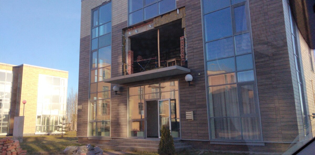 В Лахта Парке сносят фасады зданий, где живут люди.