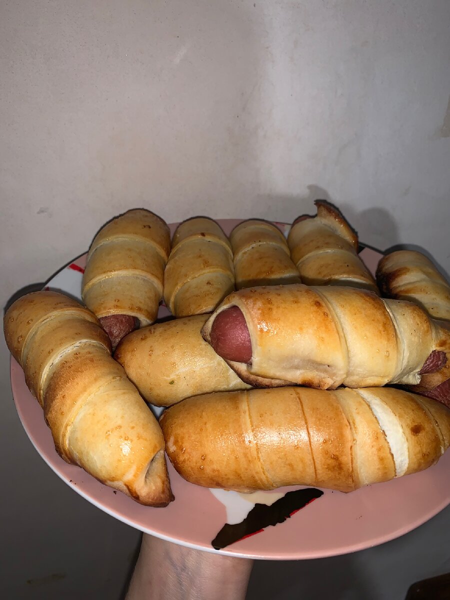 Теперь докручиваем все остальные сосиски и выкладываем на противень