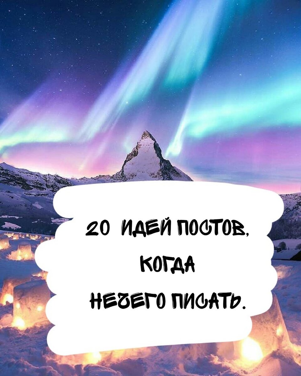 Привет! Меня зовут Саша. Сегодня я помогу тебе преодолеть творческий кризис и расскажу 20 идей постов, когда нечего писать. 2. Рекомендация книг/фильмов/сериалов. Актуально для многих, когда нечем заняться или хочется расслабиться вечером. 3. Ваши необычные привычки. 4. Расскажите про ваши комплексы и как вы преодолели их. Людям важно знать, что быть несовершенным абсолютно нормально, ведь у всех есть минусы. 5. Планы и цели на ближайший месяц. Отличный мотиватор для вас и ваших подписчиков. Вы даете обещание выполнить эти цели и задачи, а подписчики пойдут по вашему следу и займутся организацией своей жизни. 6. Какую суперспособность вы хотели бы иметь. 7. Ответы на часто задаваемые вопросы. 8. Спросите совет у подписчиков на определённую тему. Больше общения в блоге - залог активности и тёплых взаимоотношений между вами и читателями. 9. Выскажете свое мнение на счет экологического состояния в мире. Экология – одна из самых актуальных тем на данный момент, вы привл