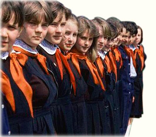 Когда в 80-х годах ребенок шел в школу, то ему на самом первом уроке рассказывали про дедушку Ленина, каким он был добрым и хорошим, что он всем наказывал: «Учиться, учиться и еще раз учиться". И дети свято верили, что их главной миссией является учеба. Первоклашкам прикалывали значок - красная звездочка с золотым ободком внутри, а в центре - детская фотография Владимира Ульянова. С этого момента они становились октябрятами. В классе ребят разбивали на звенья, выбирали звеньевых. Красный галстук был символом силы, смелости, чести. Нам рассказывали, что красный галстук - это часть красного знамени, за которое люди воевали и красный цвет - это кровь людей, боровшихся за победу. Если ученик приходил в школу без галстука, либо он был грязным и помятым (а пачкался и мялся он очень быстро), его ругали, могли выставить на педсовете и распекать за плохое поведение и несерьезность. Если ситуации повторялись, то могли исключить из пионеров - вот это было самым большим позором тех времен. Инте