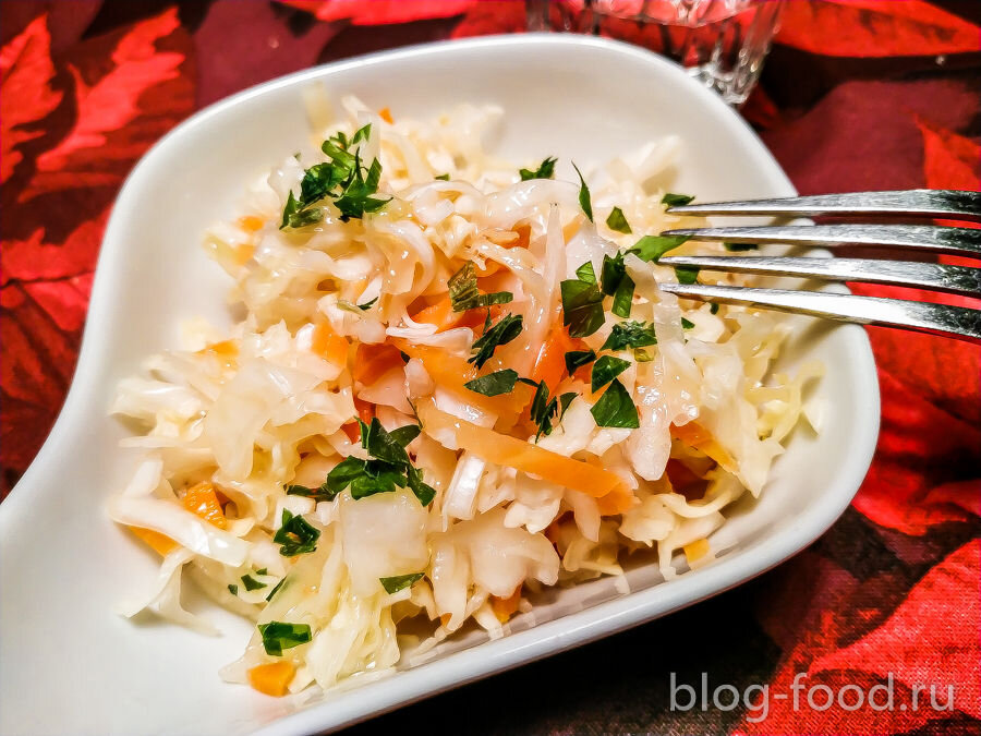 Добрый день! В сети есть множество рецептов быстрого квашения капусты за два, и даже за один день, но она при этом получается не столько квашеной, сколько солёной и не имеет характерного вкуса и аромата, присущей капусте, заквашенной «по настоящему» и постоявшей продолжительное время в бочке или банке. Сегодня у нас рецепт приготовления квашеной капусты, которая по вкусу и консистенции очень похожа на бочковую. Готовится она хоть и не два дня, однако и не столько, чтобы не делать её периодически перед праздниками или приездом гостей. Продуктовый набор: Капусту и морковь шинкуем. В 800 мл горячей воды (не кипятке) растворяем соль. Кладём капусту в кастрюлю или глубокую миску, заливаем получившимся рассолом и оставляем на три дня. Добавляем сахар, перемешиваем, оставляем ещё на два дня, после чего с удовольствием употребляем по назначению )). Приятного аппетита!
