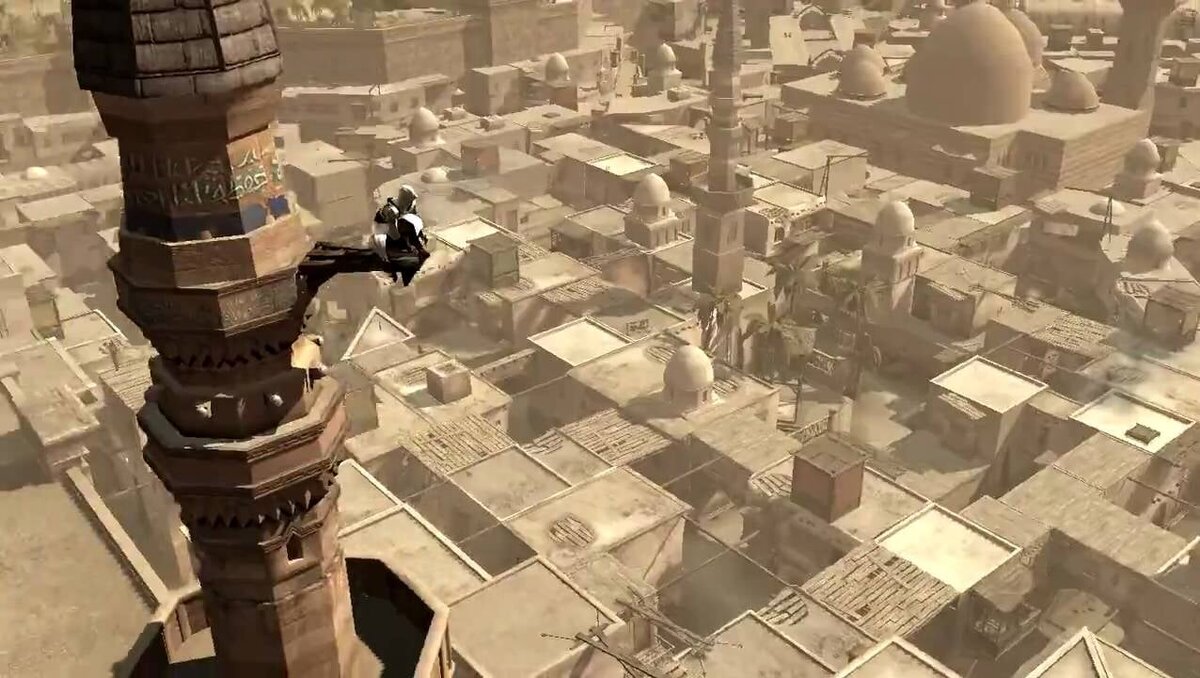 Если появление открытого мира, смены дня и ночи или быстрого перемещения в играх было неизбежно, система с вышками выглядит куда более искусственной. Под «вышками» обычно понимают возможность буквально забраться и активировать высотное строение – как правило, чтобы открыть новую секцию карты – либо более изобретательную подачу столь же репетативного действия. В отличие от других механик в нашей серии, эта – современная. Она появилась в 2007 году. Франкоканадский геймдизайнер Патрис Дезиле, ранее работавший над Prince of Persia: The Sands of Time, делал идейную наследницу игры, Assassin’s Creed. В ней Альтаир тоже сражается с врагами, исследует песчаные локации и карабкается по всему, за что можно зацепиться. Вот только в первой части местом действия стала заметно упрощенная Святая земля XII века – место, в котором герою зачастую приходилось бегать по земле, а большинство доступных зданий не отличались интересной архитектурой или высотностью. Видимо, в попытках дать геймерам больше инт