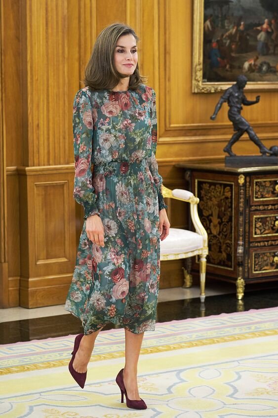 Королева Испании Летисия часто удивляет своими модными выходами. Она всегда выглядит одновременно роскошно и демократично. На одном из приемов во дворце Сарсуэла королева предстала перед гостями в цветущем виде - в платье, усыпанном чайными розами. Летисия очередной раз продемонстрировала искусство модной демократии, надев наряд одного известного fast-fashion бренда. Согласно Википедии, термин fast-fashion или "быстрая мода" используются модными компаниями розничной торговли для обозначения быстрого обновления ассортимента несколько раз в сезон. Одежда этого класса основана на последних модных тенденциях, которые ежегодно представляются на весенней и осенней неделях моды. Качество fast-fashion позволяет целевому потребителю купить модные вещи по более низкой цене. Эта философия быстрого изготовления по доступной цене используется в крупных розничных торговых сетях, таких как, например, H&M, Zara и других. Акцент делается на оптимизации поставок для того, чтобы эти платья разрабат