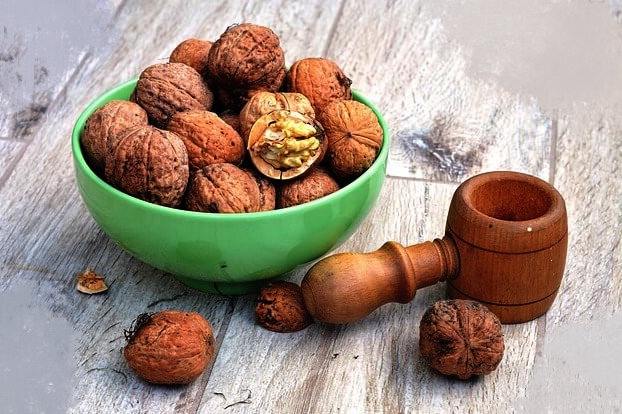 Грецкие орехи, многие могут смеяться над названиями продуктов ,но они богаты омега-3, антиоксидантами и противовоспалительным действием. Они также содержат бесценные вещества, такие как: Витамины группы В полезные медь, железо , марганец, селен, цинк, кальций. Меня поражает, насколько удачно народная медицина может воздействовать на организм различными препаратами. Было замечено, в частности, что грецкие орехи похожи на мозг и сказал, а это один из самых важных десяти органов. Аналогия оказывается особенно поддерживаемой, потому что грецкие орехи влияют на мозг и нервную систему из-за разнообразия содержимого набора омега-3. Грецкие орехи являются хорошим вариантом для людей, которые пьёт много кофе и из-за этого подвергаются риску дефицита магния. Орехи дополняют этот ингредиент. Кушать их регулярно также стоит тем , когда у вас нервная работа или вы много учитесь. Дефицит минералов или омега-3 жирных кислот может привести к усилению негативных симптомов со стороны нервно