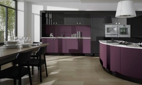 Наиболее удачно смотрится мебель баклажанового цвета с глянцевым фасадом. Но если в интерьере вы выбрали такую мебель, то отделка должна быть другого цвета, и наоборот – фиолетовую отделку нужно разбавить светлой мебелью.