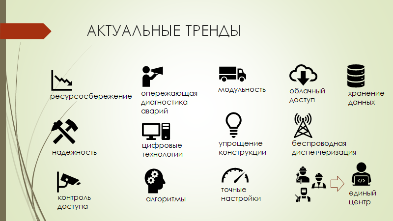 Вот они, главные актуальные тренды, которые сложились уже к началу 2020 года. Давайте подробно рассмотрим каждый из них. Первый и самый важный из года в год тренд- это надежность, она включает в себя: Любое оборудование это набор алгоритмов и действий, который имеет свойство ломаться или сбиваться с верного пути. Избежать этого нельзя, но возможно предотвратить. Для этого следует контролировать состояние оборудования на любом этапе его эксплуатации. Опережающая диагностика аварий: Любая модернизация и автоматизация ведет к увеличению потребления электроэнергии и других ресурсов. Дополнительные затраты приводят к уменьшению бюджета и отказу предприятий от такой модернизации. Ресурсосбережение: В любом производстве и в любом оборудовании должен существовать не маловажный фактор, такой как последовательность. Алгоритмы: Ах, как бы хотелось не выходя из своего кабинета видеть как работает оборудование... Мечты? Реальность! Беспроводная диспетчеризация и облачный доступ: Дистанционный кон