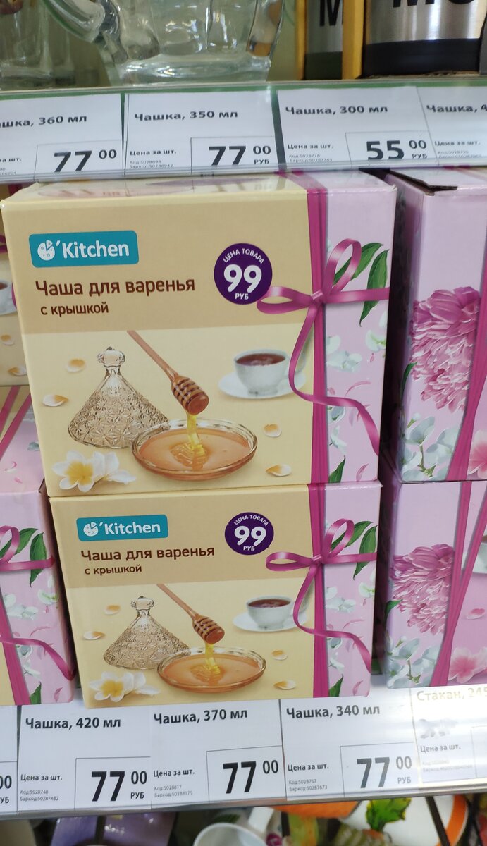 Появились чаши для варенья и меда с крышкой. Красивое ажурное прозрачное стекло. Производитель: Китай. Цена~99 р.