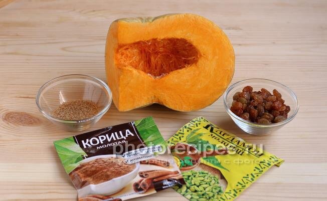 ДЕСЕРТ ИЗ ТЫКВЫ С КОРИЦЕЙ И ИЗЮМОМ Для приготовления десерта не обязательно печь пирог или торт, можно запечь в духовке тыкву с пряностями и изюмом и у вас получится вкусное и полезное лакомство. Такой десерт действительно может заменить любой кусочек торта и не нанесет фигуре такого вреда, как тот же кусочек калорийного торта с кремом. Поэтому, этот рецепт пригодится тем, кто следит за своим весом и здоровьем. Самое главное, не есть даже такой полезный десерт на ночь, ведь он все же содержит сахар, который есть и в самой тыкве, и в изюме. Зато в течение дня баловать себя можно вполне. Что нам понадобится для рецепта: Десерт из тыквы с корицей фото рецепт Если из тыквы планируется готовить сладкое блюдо, как в данном случае, то нужно выбирать тыкву со сладкой мякотью, потому что тыква бывает разных сортов и сладость у нее разная. С меньшей сладостью тыкву покупают для приготовления несладких супов и прочих несладких блюд. Так что берем кусок сладкой тыквы, очищаем ее от кожуры и нареза