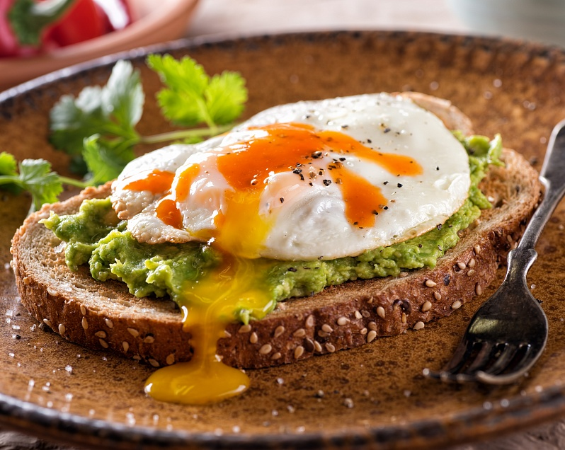 Нарежьте авокадо толстыми кусочками и выложите на тосты. Посолите. Шаг 3