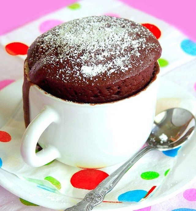 ИНГРЕДИЕНТЫ 1 яйцо 4-5 ст.л сахара 4 ст.л муки 3 ст.л молока 2 ст.л какао порошка 3 ст.л слив. масла 0,5 ч.л ванильного сахара 0,5 ч.л соды щепотку соли ШАГ 1/6 Яйца размешать с сахаром, добавить размягченное масло, какао, молоко, ванильный сахар, соль, соду, муку. Всё хорошо перемешать. ШАГ 2/6 Заполнить небольшие формы на 1/2 часть. Я использовала силиконовые для кексов. ШАГ 3/6 Так же по вкусу добавляем начинку. В первый я положила грецкий орех, во второй кокосовую стружку, в третий шоколадные капли. ШАГ 4/6 Ставим в микроволновку на 2,5 минуты при мощности 600ватт. ШАГ 5/6 Остудить. Перед подачей полить шоколадом, сгущенкой, вареньем или сиропом... на ваш вкус! :) ШАГ 6/6 Приятного аппетита!!! напиши в комментариях вкусный ли получился кекс:)