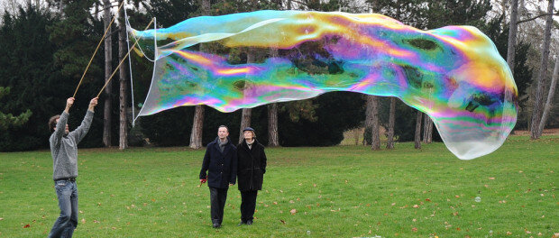 Кто не пускал мыльные пузыри в детстве? Но пускание больших и огромных мыльных пузырей это необычное зрелище, которым могут наслаждаться как дети так и взрослые. Часто, когда вы покупаете традиционный набор для пускания мыльных пузырей вы задаётесь вопросом, как сделать хороший раствор для выдувания действительно больших мыльных пузырей. Домашними средствами можно сделать приспособление и раствор для получения действительно больших мыльных пузырей. Что вам нужно? Чтобы сделать сделать приспособление для запускания больших мыльных пузырей вам понадобится: Как сделать приспособление для больших пузырей? Для начала мы разрезаем нашу верёвку на две части около 80 см и 120 см. Связываем воедино два конца верёвок: