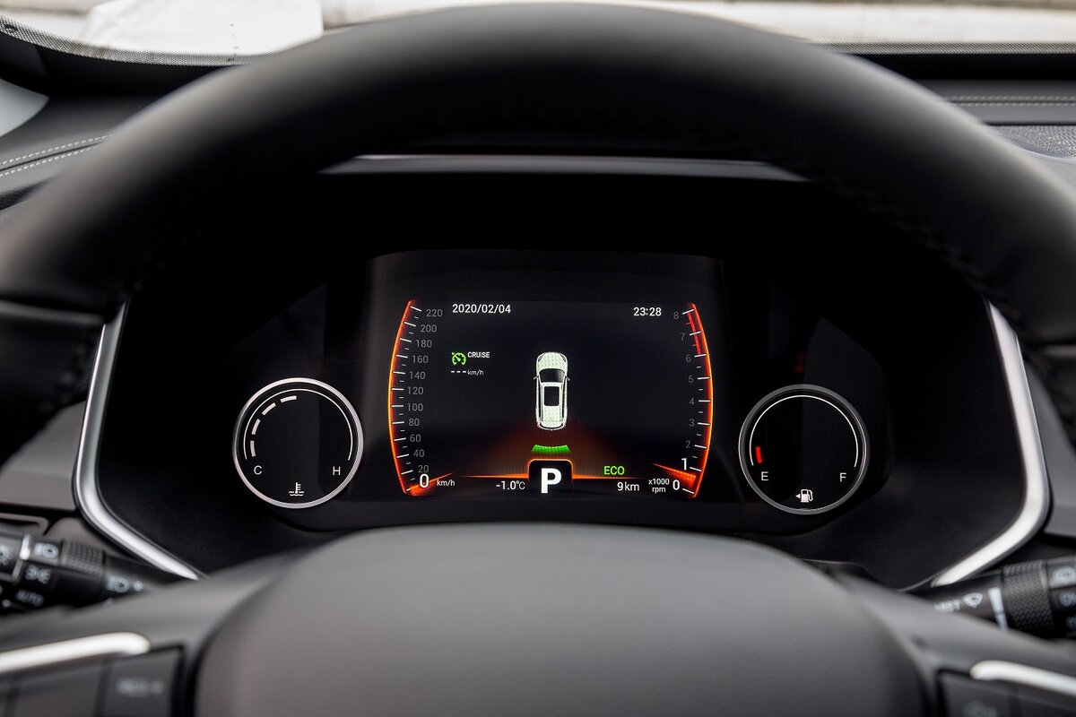 Новинка российского рынка получила цифровую зону управления с тремя экранами в салоне. Технологичный 7-дюймовый экран приборной панели включает традиционные шкалы спидометра и тахометра, а также предоставляет доступ водителю к информации по пробегу, расходу топлива, температуре внешнего воздуха, давлению и температуре в шинах и многому другому. Вывод показаний на экран осуществляется при помощи кнопок на мультифункциональном руле. Водитель может выбрать в соответствии со своими предпочтениями один из трёх вариантов цветового оформления экрана приборной панели — золотистый, терракотовый или ультрамариновый.