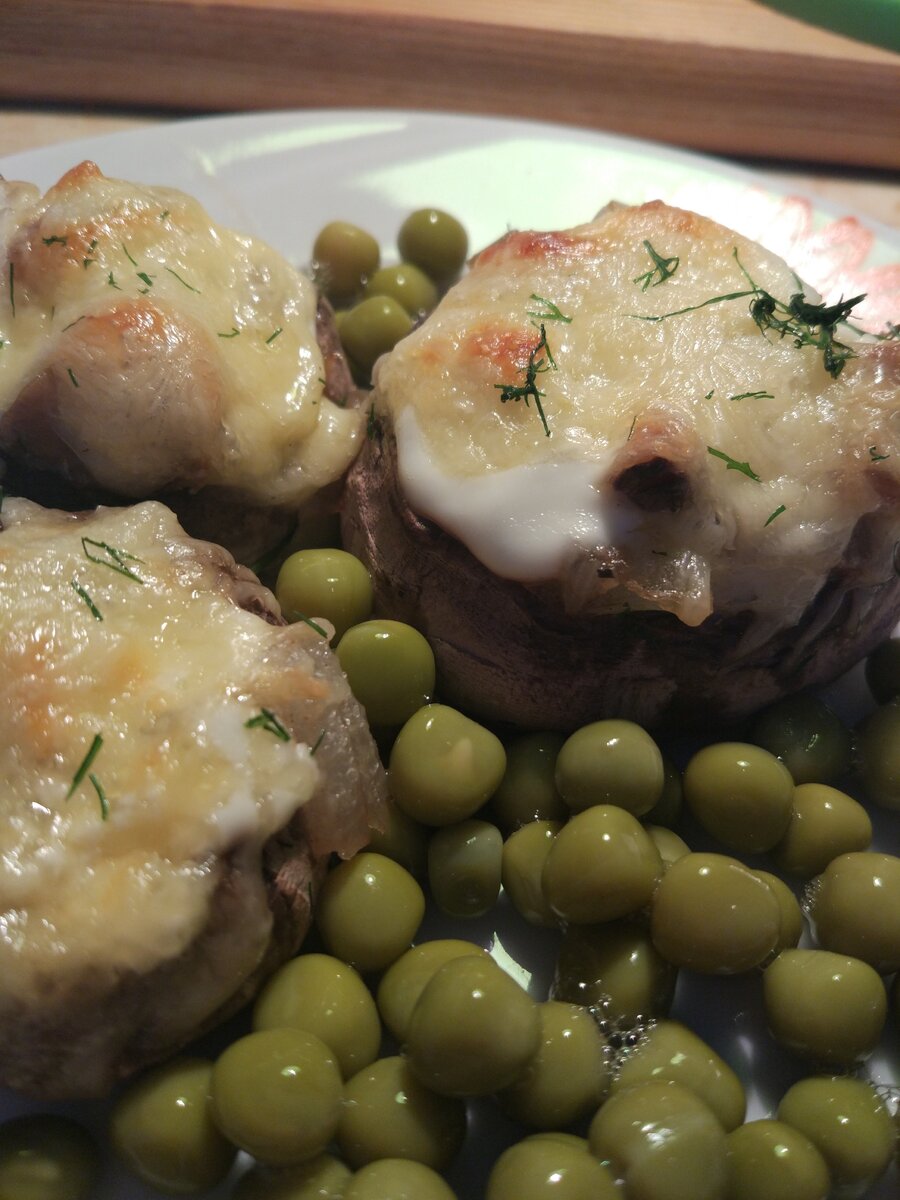 🔸Шампиньоны (у меня их 8 шт) 🔸Лук 1шт 🔸Сметана (любой жирности) 🔸Сыр (по вкусу) 🔸Зелень ( по вкусу) 🔸Соль(вместо соли использую специи, но это кто как любит) 1. 2. Шампиньоны предварительно промыть и очистить. Аккуратно извлечь ножки, не повреждая шляпки. Разложить шляпки на смазанный подсолнечным маслом противень(в моем случае форму). 2. Нарезаем мелко лук и ножки от шампиньонов. Пассеруем на разогретой сковороде (не забываем про масло, вот тут можно добавить сливочное для аромата).Обжариваем до слегка золотистого цвета. + соль, специи по вкусу 3. Выкладываем лук и ножки в шляпки 4. На каждую шляпку по чайной ложки сметаны 5. Сыр трём на мелкой терке 6. Отправляем в хорошо разогретый духовой шкаф минут на 20,до золотистой корочки сверху. Украшаем зеленью ☘️ Приятного аппетита ❤️