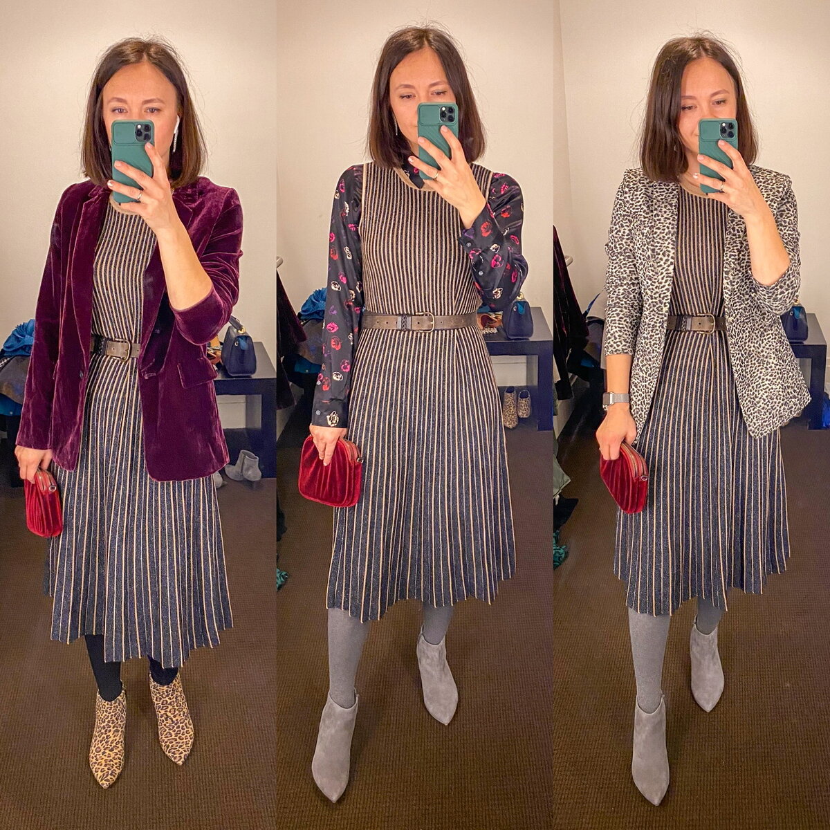 Здесь, конечно не все возможные варианты, буду постепенно делиться. Только, пожалуйста, пробуйте применить к себе. Несколько основных лайфхаков при сочетании платья: ✖️Если на вас трикотажное, больше ничего подобной фактуры не надевайте. Никакого свитера, водолазки и уж тем более вязанного кардигана. Не превращайтесь в уютную такую бабулечку. Вполне возможно, что найдутся такие трикотажные вещи, которые стильно воссоединяться, но часто они только друг другу жизнь портят. ✖️В остальном надевайте и НА и ПОД всё что угодно. Блуза, свитер, жакет, рубашка, кардиган... Важно, чтобы то, что под платьем было не заметно, только там, где предполагалось, что будет видно. ✖️У вещей, надетых поверх, смотрите правильную длину, нужный вам силуэт, вырез. ✖️Хорошо бы, конечно, использовать при сочетании разные цвета. ✖️Смело покупайте тонкие шарфики или широкие ленты и завязывайте их бантиком, галстуком или ремнём. ✖️Темный ремень шириной 5-7 см это база. Обязательно обзаведитесь. Но и широкий и узкий