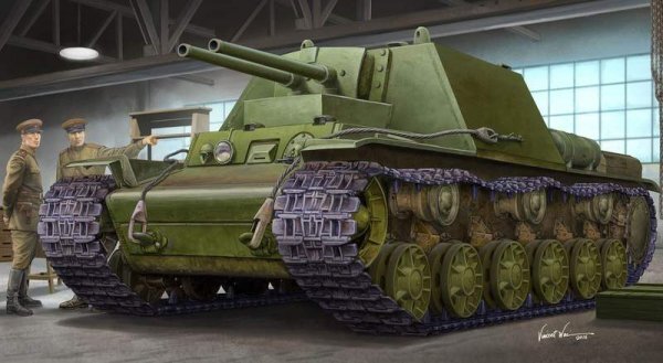Разработали два проекта — один с установкой такой «системы» в увеличенную башню на Т-34, второй — на базе КВ с установкой орудий в неподвижной рубке. Последний в итоге построили, а в 1942 году переделали под использование двух 76-мм пушек. Но даже в достаточно просторной рубке заряжать сразу два орудия было не удобно, да и первый выстрел сбивал прицел для второго.