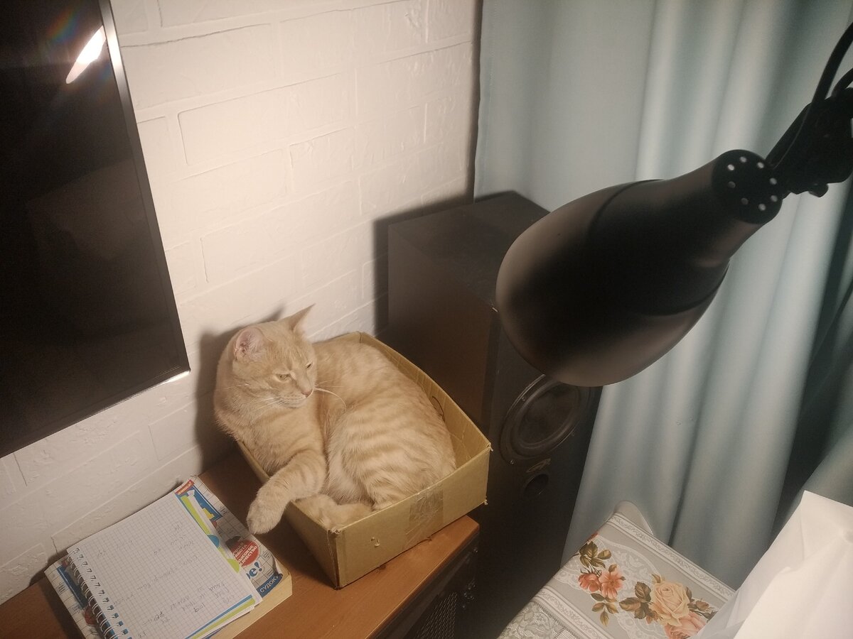 Я быстренько разделась-разулась, и заглянула в гостиную. Бедный Скизи сидел в своей коробочке, вжавшись спиной в стену, на него была направлена моя лампа.