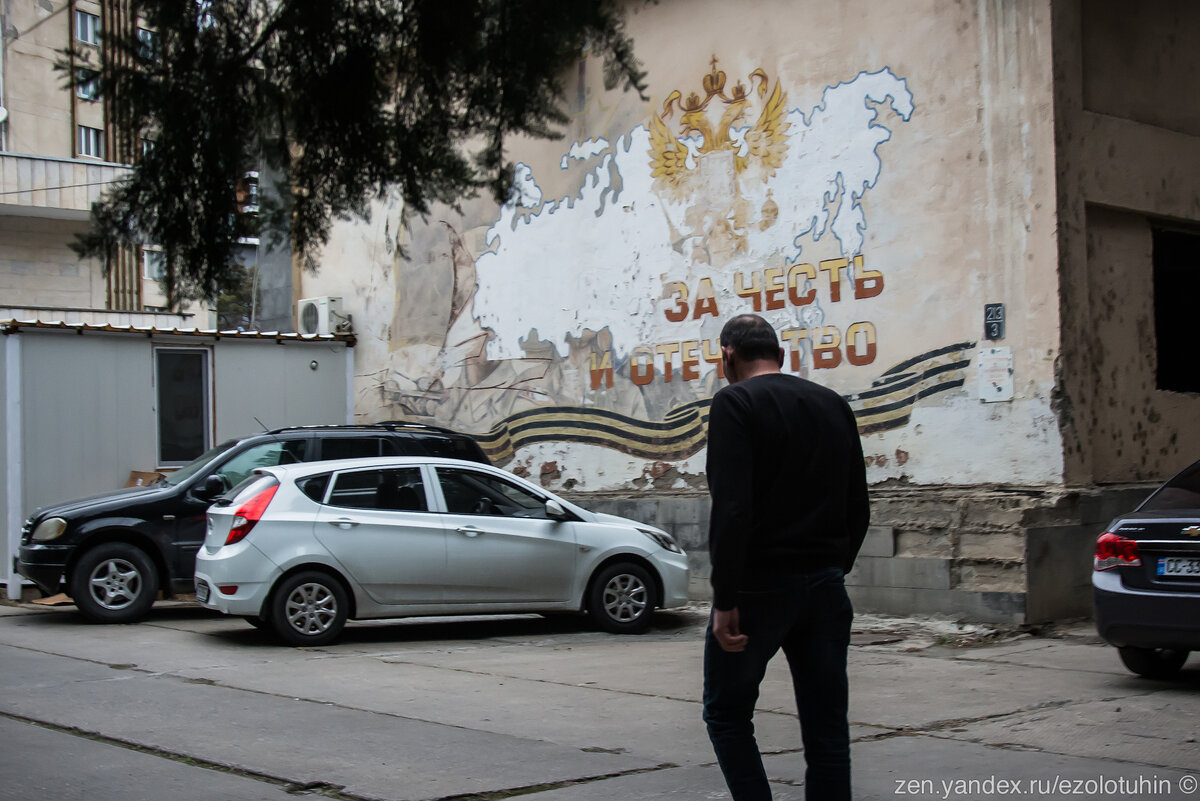 Сегодня уже мало кто вспомнит, но в Грузии после распада СССР базировались российские военные, а в Тбилиси даже был главный штаб всего закавказского округа. Русские войска вывели из Грузии в 2007 году и уже после этого между странами происходили всем известные события. Я сходил посмотреть и пофотографировать российскую военную часть спустя 13 лет после ухода русских военных. Военная часть, а точнее штаб Закавказского военного округа находилась прямо в одном из жилых районов Тбилиси, до ближайшего метро пешком буквально десять минут. Сейчас эта территория принадлежит крупному грузинскому банку, но пользуется банк ей не полностью. Например, основное здание выглядит полностью заброшенным, а чтобы не портить общий вид, из него сделали арт-объект. На граффити размером во все большое бывшее военное здание изображен Святой Георгий. Получилось достаточно неплохо. Но интересно, что на территории есть будка с охранником, который запрещает фотографировать граффити на здании даже из-за забора. Но