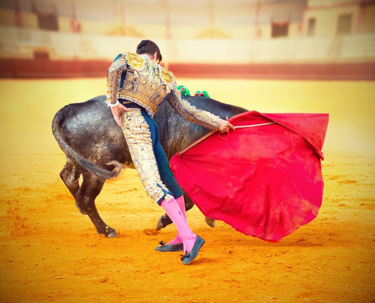 Быки участвовавшие в корриде происходят из очень агрессивной породы (El Toro Bravo). Быков злят движения. Они специально подбираются таким образом, что бы любые резкие движения могли вывести их из себя и заставить броситься в атаку. Даже если матадор будет одет в зеленый цвет одежды и накидка будет нежного голубого оттенка, бык все равно нападет, если ее размахивать у него перед носом.