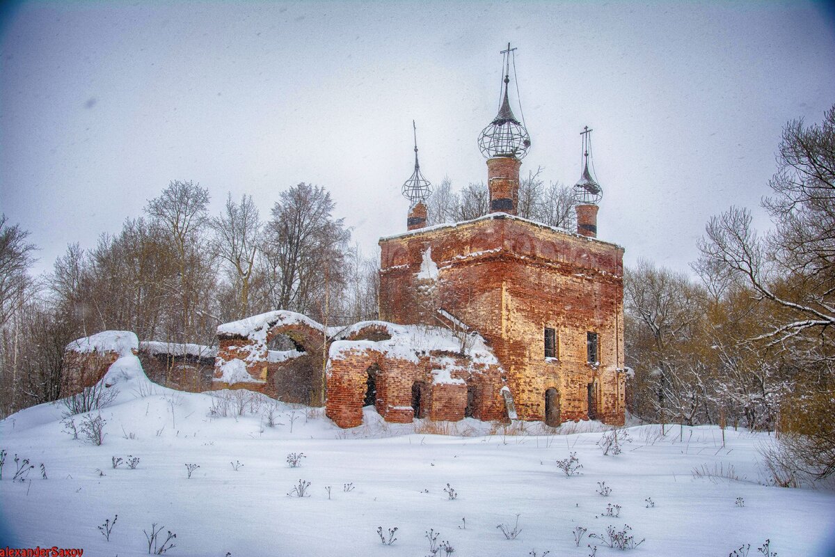 Церковь находится на краю села , в Ивановской области, Комсомольского района. Каменный храм с колокольней и двумя приделами (Иоанна Предтечи и Смоленской Богоматери). Датируется 1748 годом. Недалеко от нее до конца 19 в. располагалась деревянная, но до наших дней она увы не дошла. Колокольня храма к сожалению разрушена и от нее осталась лишь основание. Одна из любопытнейших церквей в области, с архитектурой которая основана на местных традициях, 17 века. В храме местами сохранились росписи. Присутствуют остатки деревянного иконостаса от алтаря. Внешняя архитектура очень скромная, сдержанная. В основном ее использовали для отпевания умерших и рядом с ней, за уже не существующей оградой, располагалось кладбище. Богослужение совершалось всего три раза в год. Приделов в каменной церкви было три: первый в холодной церкви во имя Собора Пресвятой Богородицы и два в теплых приделах. Правый церковный предел выстроен в честь иконы Пресвятой Богородицы Смоленская, а левый в честь Рождества