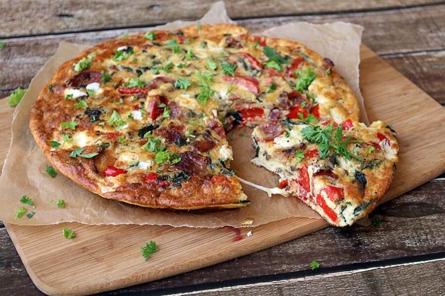 Фриттата с беконом, горохом и козьим сыром - рецепт из книги "Курсы элементарной кулинарии" Гордона Рамзи (Gordon Ramsay's Ultimate Cookery Course).