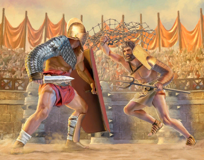 А их требовалось минимум 10 штук - 5 пар хотя бы. Хотя история знает необычайно "размашистые" представления, где участвовали по паре сотен гладиаторов, а то и больше. Из них, правда, большая часть были грегарии - дешевые, низкоранговые бойцы.