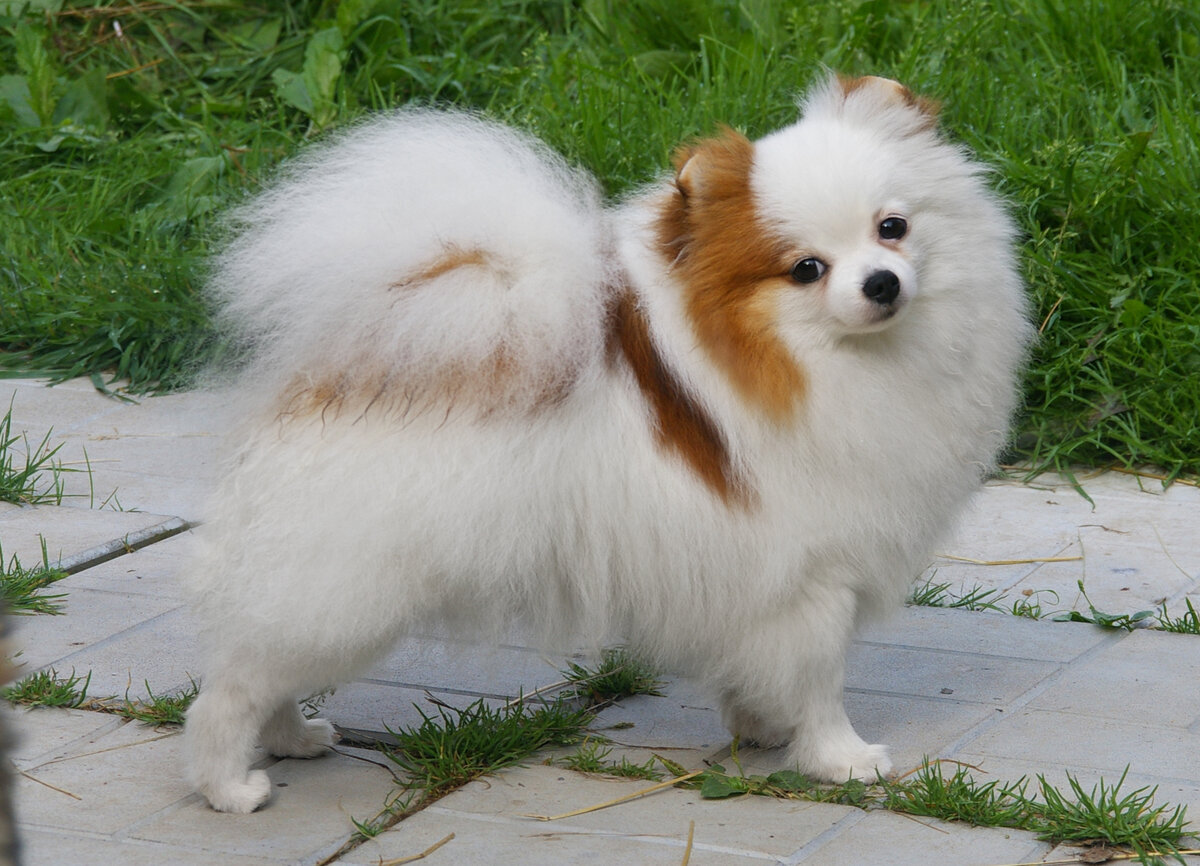 Кляйншпиц или малый немецкий шпиц. Еще один декоративный представитель своего рода. В отличие от своих крупных собратьев к охоте или охране они не приспособлены. Рост от 23 до 29 см., вес от 5 до 10 кг. Тело квадратного формата, компактный, небольшого роста. Голова у него клиновидной формы с широким черепом. Переход ото лба к морде умеренно выражен. Мордочка короткая. Мочка носа маленького размера, круглая, чёрного либо коричневого цветов у светлых представителей породы. Глаза среднего размера, овальной формы; веки чёрного либо тёмно-коричневого цвета. Уши высоко посажены, маленькие, расположены близко друг к другу, треугольной формы, с заострёнными кончиками, стоячие, подвижные. Шея средней длины, шерсть вокруг образует гриву. Спина короткая, крепкая и прямая. Грудная клетка глубокая. Живот подобран. Хвост высоко поставлен, загнутый в кольцо, плотно лежит на спине, покрыт густой и пышной шерстью. Конечности прямые, параллельны друг другу. Шерсть прямая, длинная с густым и плотным