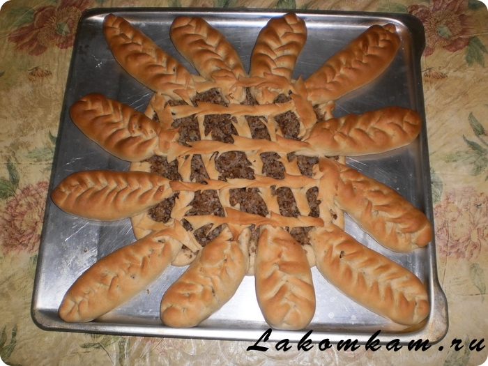 Пирог с гречкой и фаршем в виде солнышка наверняка поднимет вам настроение своим видом и вкусом.