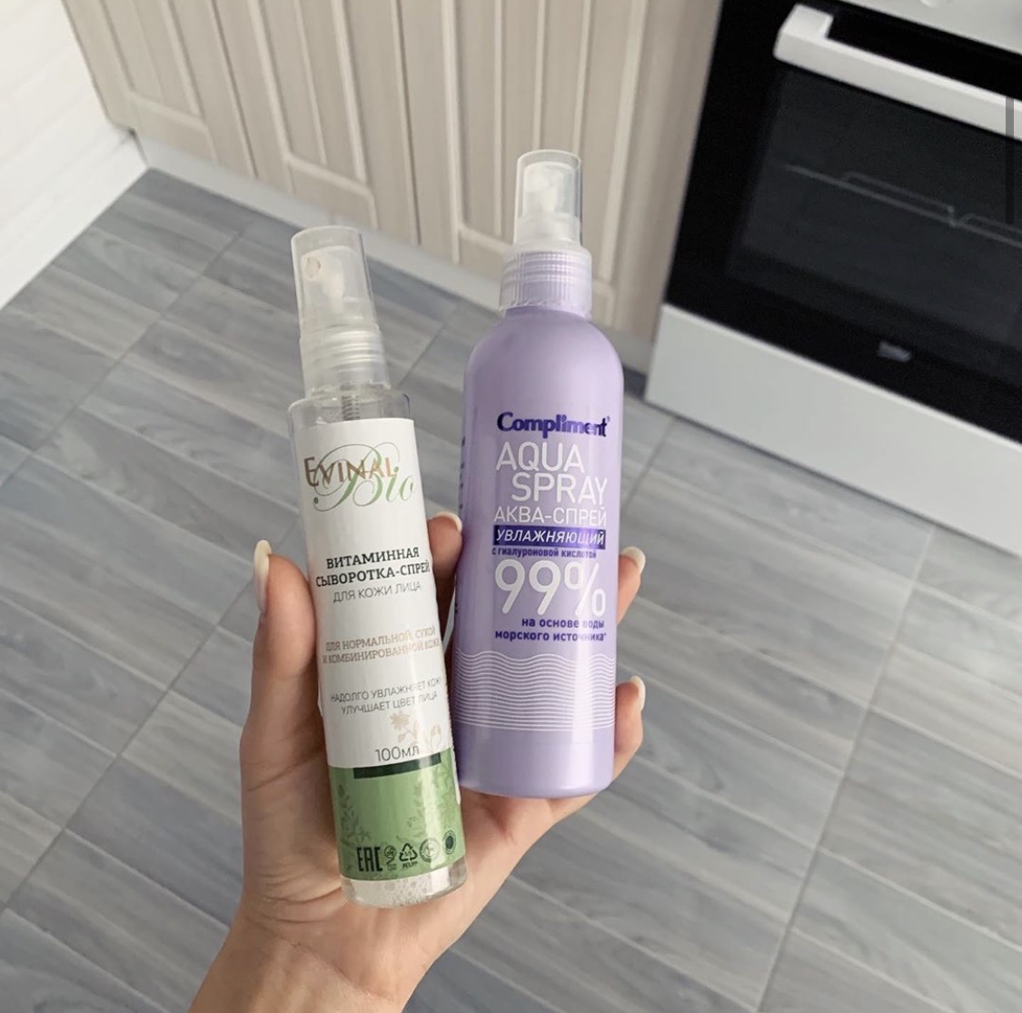 Мне сложно влюбиться в бюджетные средства, если честно.. Я протестирую, похвалю, напишу хвалебный пост, но пользоваться буду все равно более дорогой альтернативой НО именно этим халявным спреем для лица я пользуюсь постоянно! Это мой 4! флакон Так про какую баночку я говорю? 😏 Сыворотка-спрей для лица Evinal (та, что слева) Отличная вещь с отличным составом! (Куча разных витаминов группы В,С,Е) ❗️Кстати в ней используется стабильная форма витамина С (sodium ascorbyl phosphat), она не разрушается на свету и при взаимодействии с воздухом, а значит будет эффективно работать на коже! Шикарно увлажняет, улучшает и освежает цвет лица) Я ОТ НЕЁ В ВОСТОРГЕ! Пользуюсь 3 раза в неделю А теперь о том, что так хвалили другие блогерши от достаточного популярного бренда complement «aqua spray» (Я купила ее, чтобы убедиться, что сыворотка от Evinal вне конкуренции 🔝) Полный ноль... просто вода в банке.. Больше и сказать о ней нечего 💩 А цена такая же! Обе обошлись мне в 150₽ на OZON