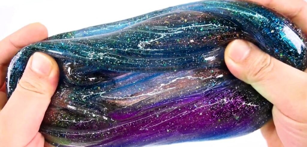 Галакси слайм (galaxy slime) Если вам нравятся звезды, планеты и галактики, то galaxy slime-это то, что вам нужно! Он такой невероятный и волшебный! Рецепт его похож на обычный лизун, но состоит из цветов, которые напоминают ночное небо: черный, фиолетовый и синий. Фишка слайма в том, чтобы сделать дома такого лизуна, надо сделать слайм каждого цвета отдельно, а затем смешать всё вместе! Такой волшебный слайм, можно сделать дома из подручных средств: тетрабората натрия, жидкого крахмала или обычной буры! Сделать слайм с тетраборатом натрия Для рецепта нам понадобится: Лайфак: Если у вас нет готового блестящего клея, можно взять обычный прозрачный клей для слаймов,смешать с красителями чёрного, синего или фиолетового цветов и добавить мелкие блёстки и вы получите разные цвета клея для Галакси слайма. Как делать слайм: 7. Храните слайм в герметичном контейнере. Когда вы будете играть со своим волшебным галактическим слаймом, цвета будут перемешиваться и создаётся ощущение, что вы враща
