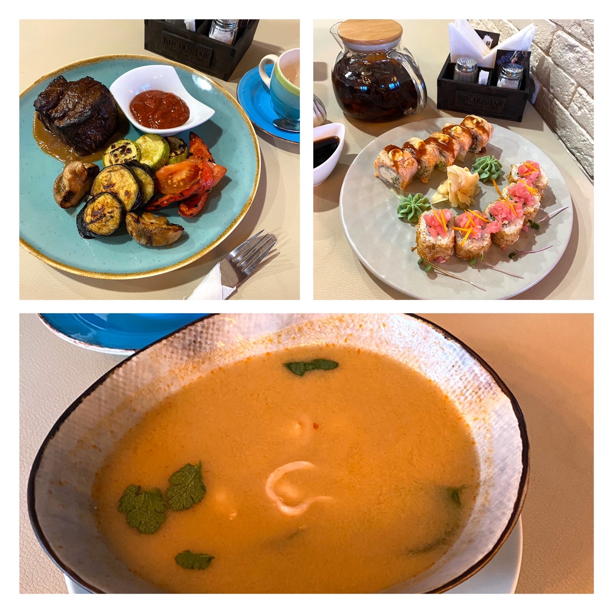 Отзыв о ресторане Kitchen Lab 👨🏻🍳 Извините, пост вышел длинный, я просто под впечатлением 😊 Чем отличается этот ресторан от других? Смысл в том, что вы платите за вход 100 рублей с человека, и заказываете блюда с минимальной наценкой. Начну с плюсов 😉 Вкусная еда, красивая подача блюд, стильная посуда. 🍴Ну и всё. Основные минусы касаются оформления зала, посоветовала бы им срочно повесить шторы, так как вид на парковку и соседство с бюджетным магазином «Светофор» точно не на пользу общему впечатлению от ресторана. Здорово было бы добавить боковой свет, возможно в виде светильников, тот который есть на данный момент очень тусклый, как будто находишься в ангаре. Не помешало бы подобрать нормальный плейлист, тот который слушали мы просто ужасен, как и качество звука, что странно, ведь на сцене стоит на вид достойное оборудование, но по итогу, звук как будто кто-то слушает свои любимые мелодии с телефона. Однозначно добавило бы уюта зонирование, хотя бы просто небольшими декорати