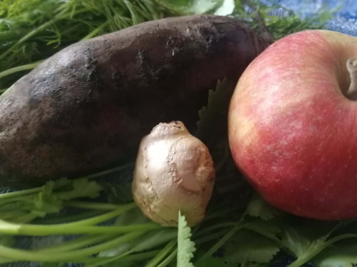 Продукты которые я использую для употребления в пищу в сыром виде, для приготовления в том числе и смузи, я беру только на рынке. В этот раз на рынке я увидел свеклу цилиндрической формы, не разу такую не встречал, хотя уже много лет работаю поваром и повидал и попробовал много, в том числе и диковинных продуктов. Такая свекла очень сочная, при нарезании из неё выделяется много сока, от обычной свеклы в магазине такого не увидишь, ну а на вкус это просто сахар и мёд и не имеет привкуса кормовой свеклы или залежалого корнеплода, как тоже часто встречается в большинстве магазинах.