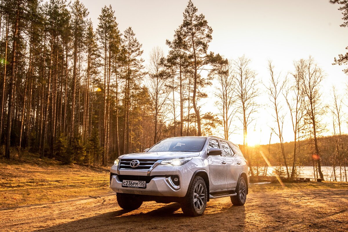 Чем отдельно примечателен Toyota Fortuner, так это тем, что он прекрасно себя ведет не только на плохих, но и на хороших дорогах. Собранная и энергоемкая подвеска отлично себя показывает на поворотах: здесь нет больших кренов, характерных для многих суровых рамных внедорожников, нет чрезмерной качки и рыскания в полосах. Инженеры хорошо допилили базу проверенного годами пикапа Hilux, сократив немного колесную базу и заменив сзади рессоры на пружины. Toyota Fortuner превратился в максимально надежный, но при этом абсолютно семейный автомобиль, на котором хоть в лес по дрова, хоть на тысячи километров с детьми по трассе. Кроме того, полный привод на трассе можно отключить простым поворотом круглого селектора прямо на ходу, что позволит сэкономить не один литр топлива. Это и есть честный полный привод для тех, кто знает, как им пользоваться, и знает, когда именно он необходим, а когда нет.