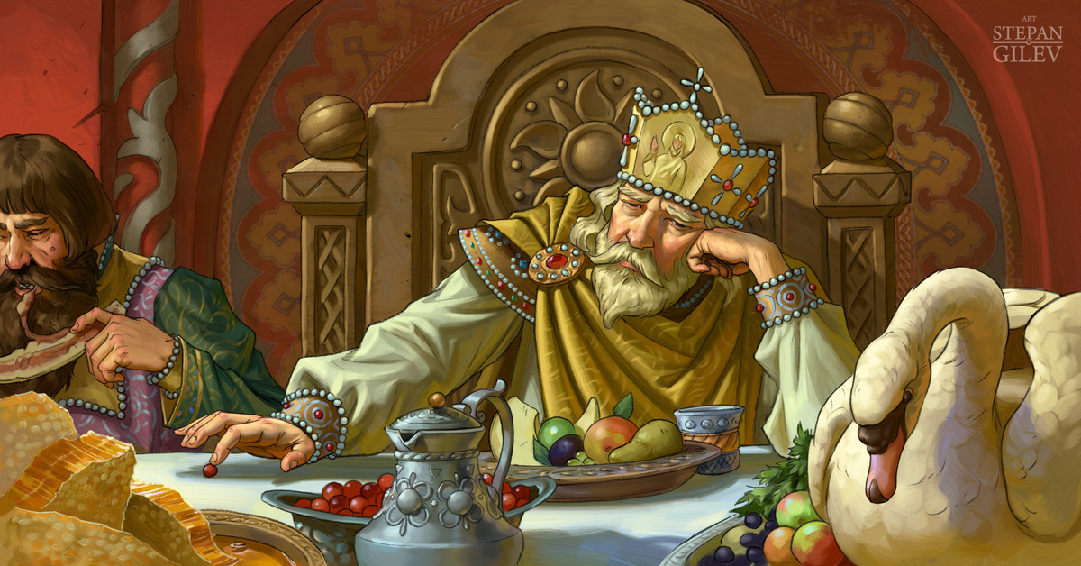 «Богатство! Летописец не сказал, что я самый богатый!» – Король бросил все забавы, все государственные дела и побежал в хранилище. С настороженностью рассматривал он бесчисленные свои сундуки, ломившиеся от золота, драгоценных камней, украшений. Он пересчитывал их снова и снова. И всё ему казалось, что сундуков мало, мало, мало, мало. Слишком мало!