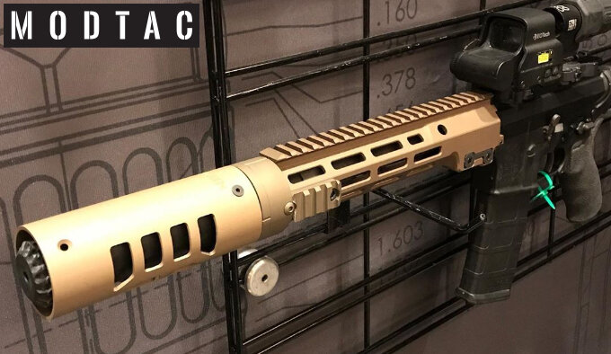 На оружейной выставке SHOT Show 2020 компания MODTAC представила жаростойкий щиток Suppressor Shield для оружейных глушителей, формата трубчатого внешнего корпуса из углеволокна с вентиляционными отверстиями.