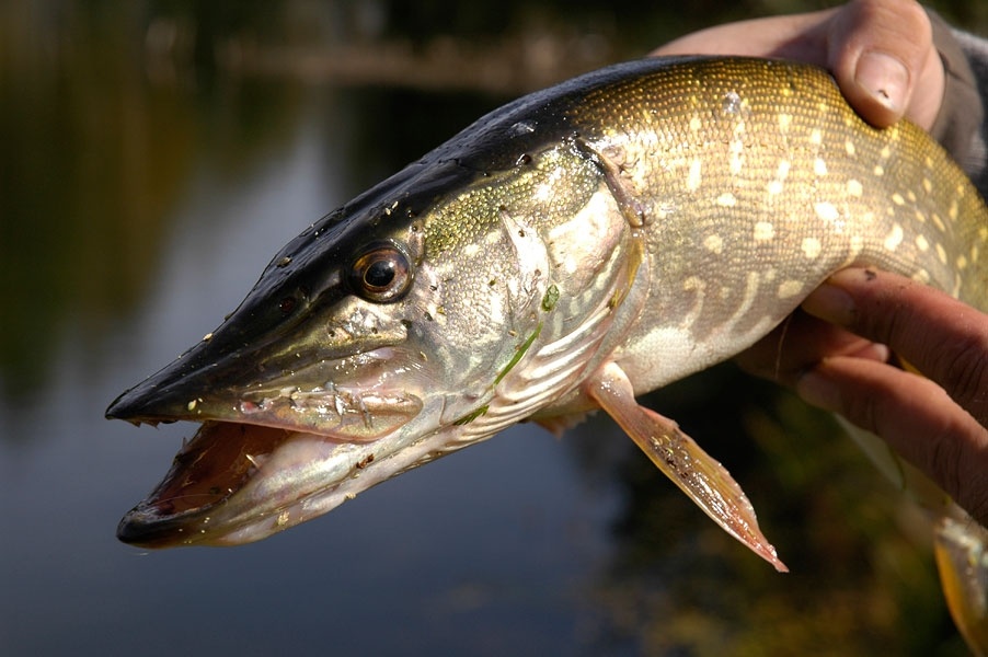 Щука - яркий представитель хищников. Взрослые рыбы вырастают весом до 16 кг, но встречаются и гиганты до 25 кг. Отличительная черта щуки - наличие мелких острых зубов и высоко посаженных глаз. Окраска щуки серая, что позволяет ей оставаться незамеченной в глубине вод. При этом цвет тела тех рыб, что живут на глубине намного темнее, чем у тех, что плавают на поверхности.