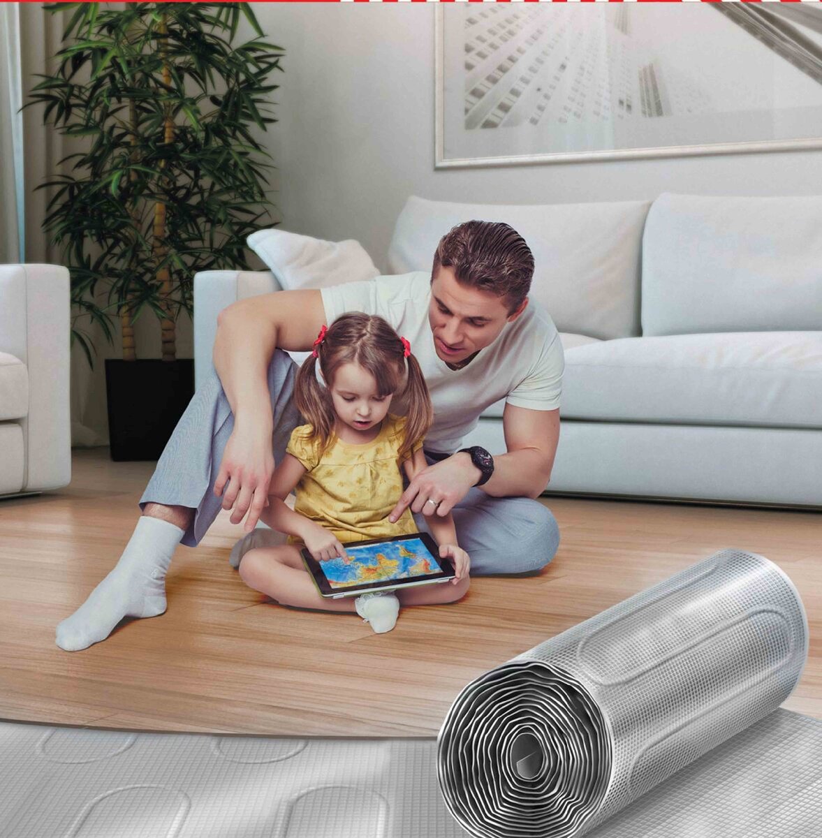 Преимущества: Эта система является универсальной в плане подбора лицевого напольного покрытия. То есть поверх системы инфракрасный пленочный теплый пол можно стелить ламинат, линолеум, ковролин, виниловую плитку, керамическую плитку и пр. Данную систему обогрева можно сделать мобильной, прикрепив ее снизу к ковру, который может убираться летом и стелиться в холодное время года. Недостатки: Наличие большого количества скрытых контактов – перед укладкой необходимо выполнить тестирование работоспособности системы. А кроме того нужно контролировать процесс укладки верхнего напольного покрытия. Для обеспечения контакта между пленкой и проводом нужно использовать специальный коннектор, обжатый плоским прессом.
