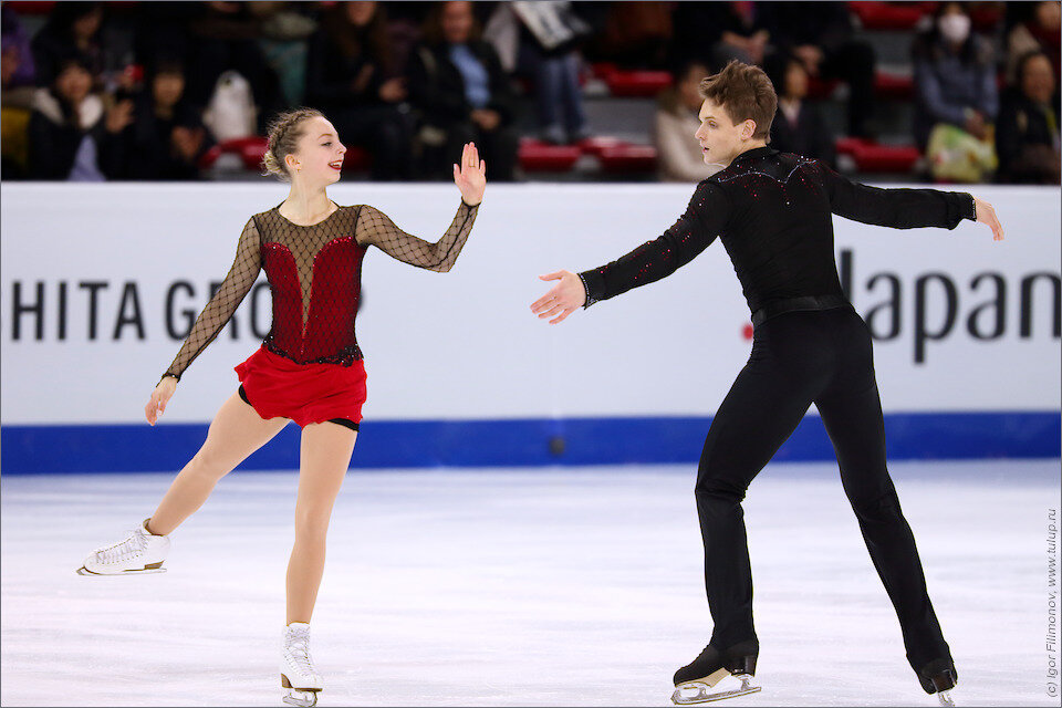 В этом сезоне (2019-2020) открыла для себя пару Бойкова/Козловский, можно сказать, начала смотреть парное катание именно с них. В прошлом сезоне фигуристы уже успели заявить о себе, а в этом колоссально прибавили и стали первой парой страны. А вот что на них было надето, мы с вами сейчас и узнаем. Ребята начали кататься вместе в 2015, и сезон 2015-2016 стал для них дебютным в юниорах. Короткая программа была под "Фламенко" Дидюля в этих вот костюмах, в беспроигрышном красно-черном варианте. Вот только сетка на Саше какая-то спорная, колготки напоминает. В произвольной был "Список Шиндлера". Диму одели качественно, на Саше вдохновение закончилось или, напротив, началось. Сетка не в тон (но это вечная боль), странный разрез с воланчиком... Непонятно ничего. В следующем сезоне короткую оставили вместе с костюмами, и немудрено, ведь пара каталась вместе только год, зато произвольную поставили новую - "Тристан и Изольда". Костюмов было два, точнее, их было два у Саши, а Дима, как я пони