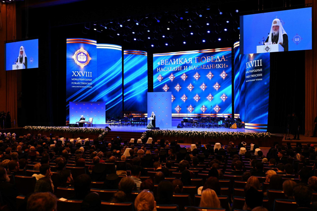 Выступая на торжественном пленарном заседании XXVIII Международных Рождественских образовательных чтений «Великая Победа: наследие и наследники», Святейший Патриарх Московский и всея Руси Кирилл назвал источником и прочным основанием Победы солидарность и единство народа. По словам Его Святейшества, все существовавшие противоречия перед лицом внешнего врага отступили на второй план. «Иногда можно услышать такое мнение, что в момент общей беды тотчас были забыты прежние обиды. Нет. Нельзя, невозможно забыть личные трагедии семей, которых коснулись репрессии, и общее горе народа, из которого пытались вытравить веру», — заявил Предстоятель Русской Православной Церкви. «И все же перед лицом внешнего врага все противоречия отступили на второй план. Главным стало служение Отечеству», — добавил Святейший Владыка. Среди примеров такого служения Святейший Патриарх упомянул подвиг казачества, а также поддержку народа Церковью в борьбе с захватчиками. «Вспомним пример нашего славного казачества,