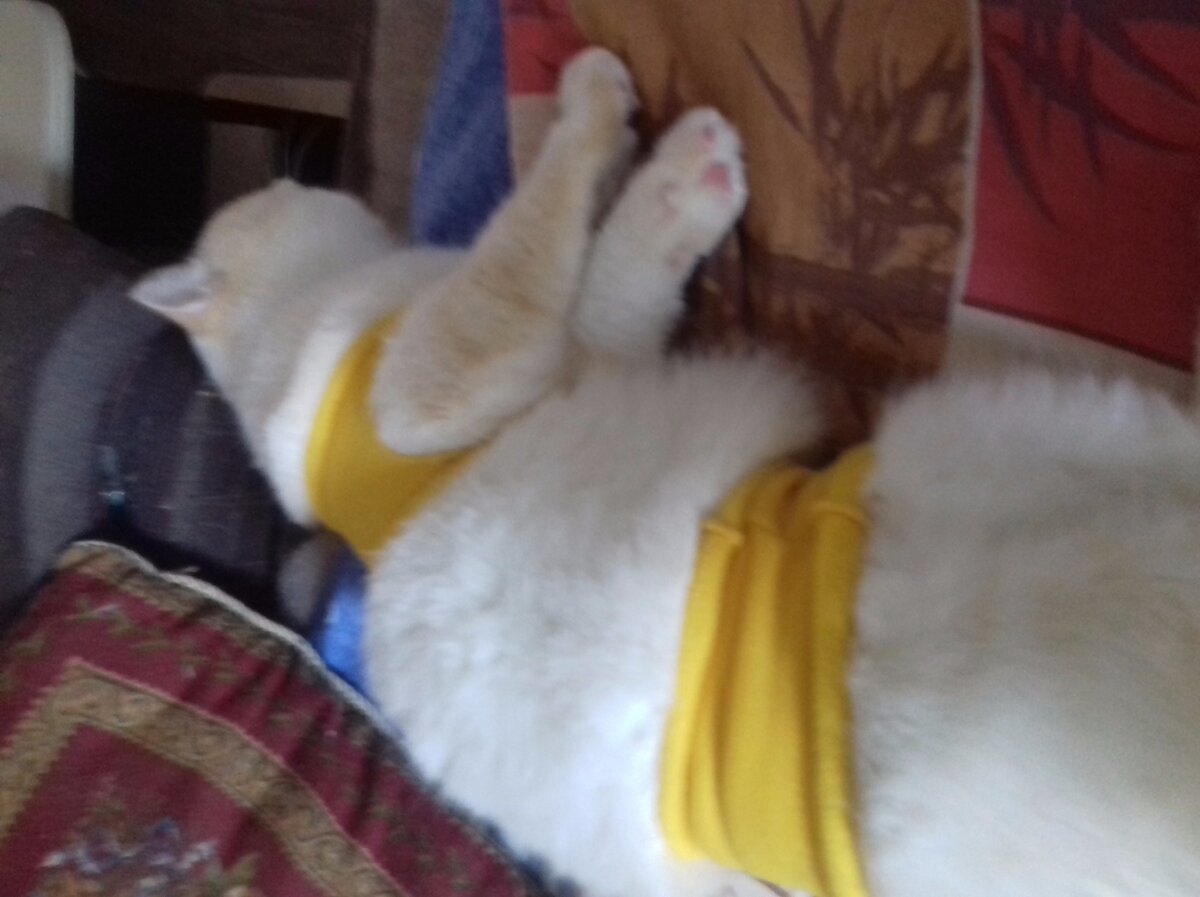 Здравствуйте, дорогие друзья! Сегодня мы сделаем кофточку для котика)))))))) Что нам понадобится : 1. Кофта мамина 2. Ножницы Приступаем: 1. Берём мамину кофточку 2. Отрзаем рукава 3. Отрезвым половину рукава 4. Делаем вырезы для рук 5.применяем кофоточку 6. Котик рад 7. Готово!!!